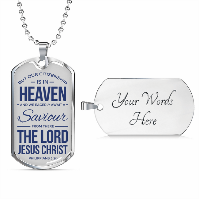 Citizenship In Heaven Necklace Stainless Steel or 18k Gold Dog Tag 24" Chain