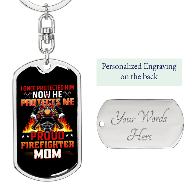 Proud Firefighter's Mom Red Stainless Steel or 18k Gold Premium Swivel Dog Tag Keychain