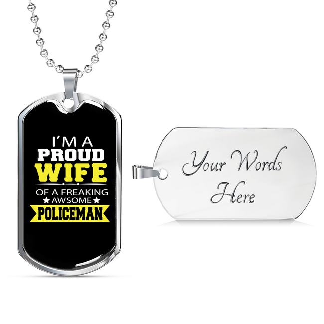 Proud Wife Of A Policeman Necklace Stainless Steel or 18k Gold Dog Tag 24"
