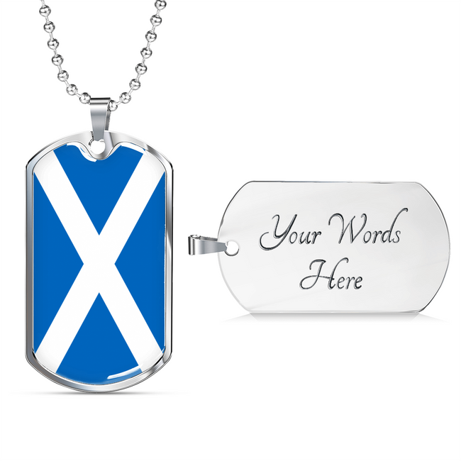 Scotland Flag Necklace Stainless Steel or 18k Gold Dog Tag 24" Chain