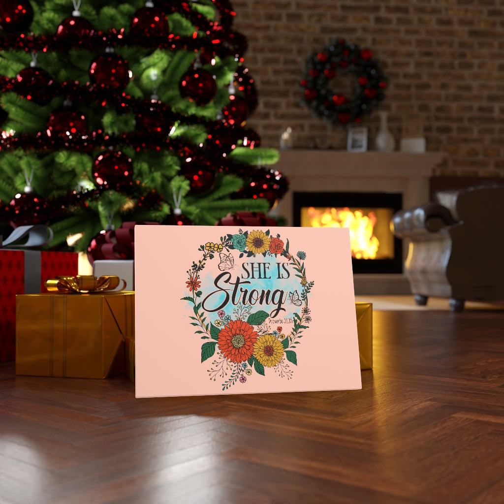 Scripture Walls Proverbs 31:25 She Is Strong Peach Bible Verse Canvas Christian Wall Art Ready to Hang Unframed