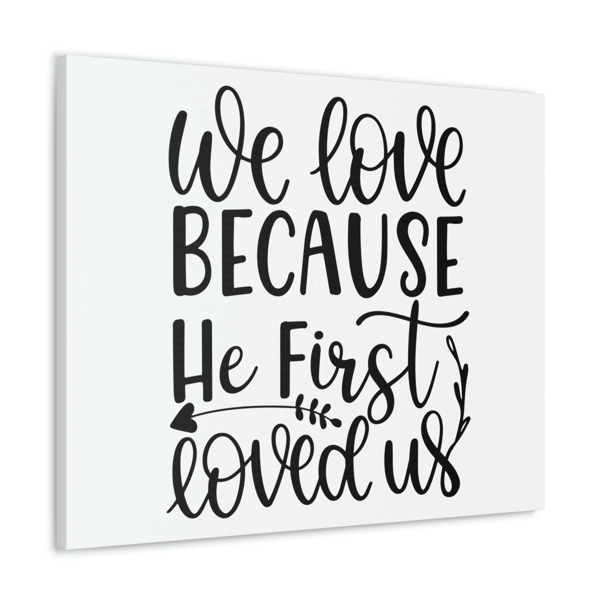 Scripture Walls 1 John 4:19 We Love Because He First Loved Us Cursive Bible Verse Canvas Christian Wall Art Ready to Hang Unframed