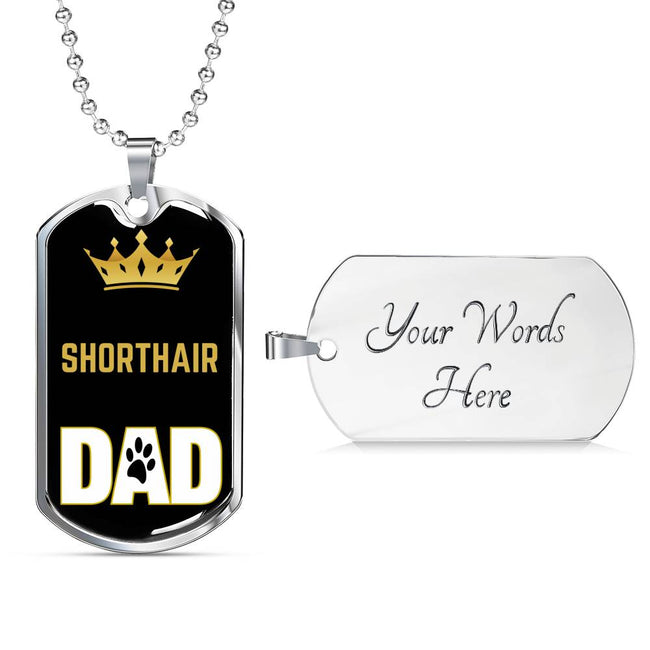 Shorthair Cat Dad Necklace Stainless Steel or 18k Gold Dog Tag 24" Chain