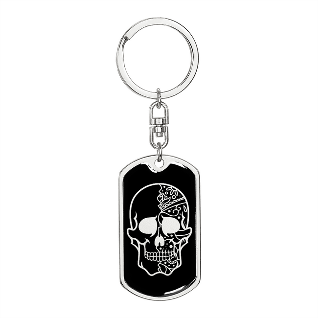 Calavera Mexican Sugar Skull 37 Stainless Steel or 18k Gold Premium Swivel Dog Tag Keychain