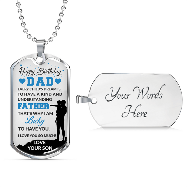 Birthday Son To Dad Necklace Stainless Steel or 18k Gold Dog Tag 24" Chain