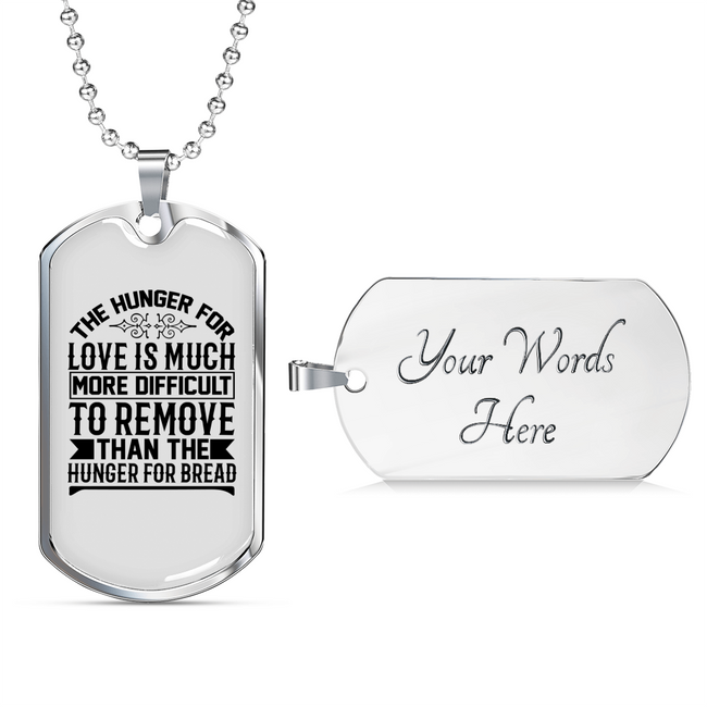 The Hunger For Love Christian Necklace Stainless Steel or 18k Gold Dog Tag 24" Chain