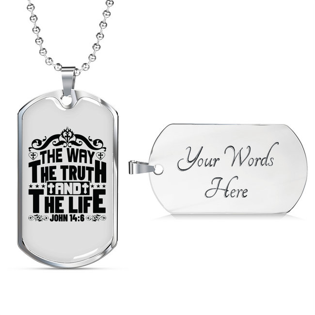 The Way The Truth Christian Necklace Stainless Steel or 18k Gold Dog Tag 24" Chain