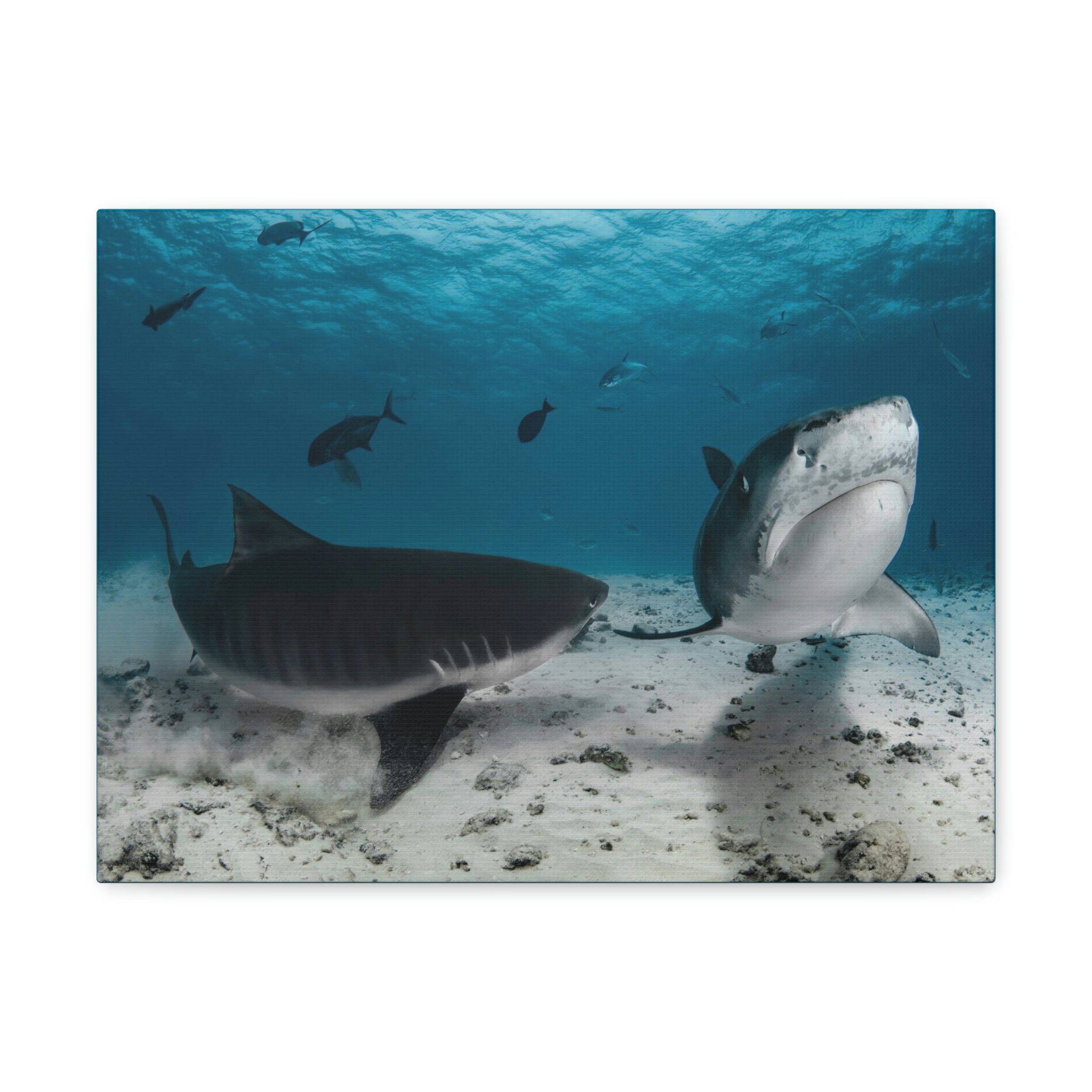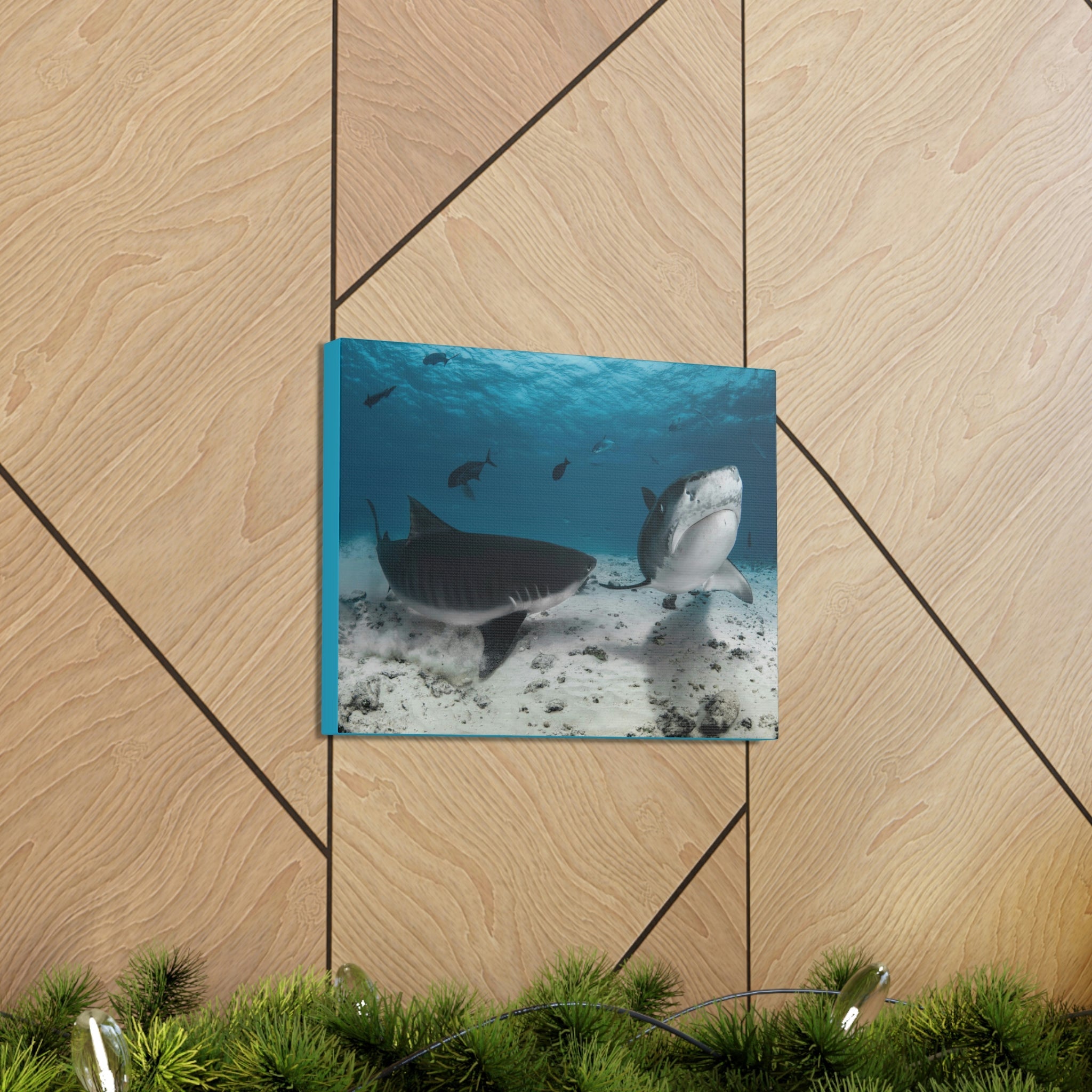 Tiger Shark Couple Tiger Shark Couple Print Animal Wall Art Wildlife Canvas Prints Wall Art Ready to Hang Unframed