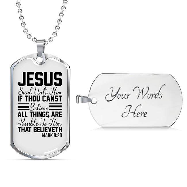 To Him That Believe Christian Necklace Stainless Steel or 18k Gold Dog Tag 24" Chain