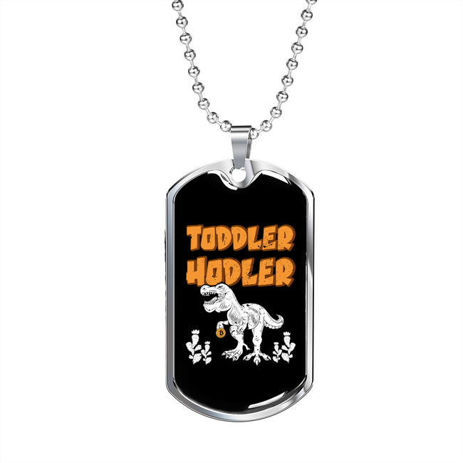Toddler Hodler Bitcoin Crypto Necklace Stainless Steel or 18k Gold Dog Tag 24" Chain