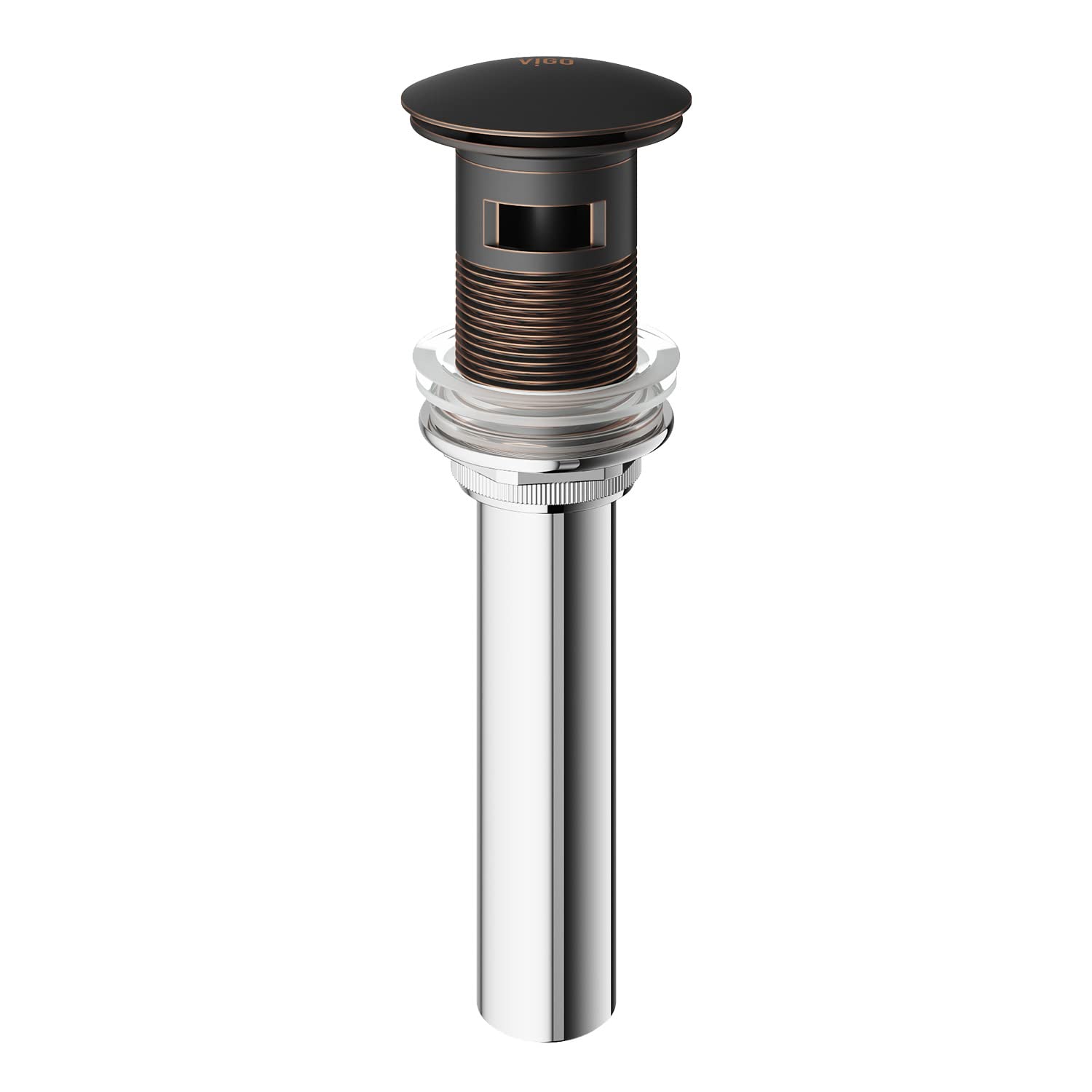 Complete your bathroom sink setup with the VIGO Bathroom Sink Pop-Up Drain Stopper in Antique Rubbed Bronze. This stylish and functional drain stopper features a 2.75" diameter and is designed with an overflow for added convenience. Crafted from durable materials, this drain stopper ensures long-lasting performance and a seamless fit for vessel sinks. The antique rubbed bronze finish adds a touch of elegance, making it a perfect match for any bathroom décor. Easy to install and use, this pop-up drain stopper enhances both the functionality and aesthetic appeal of your bathroom sink.