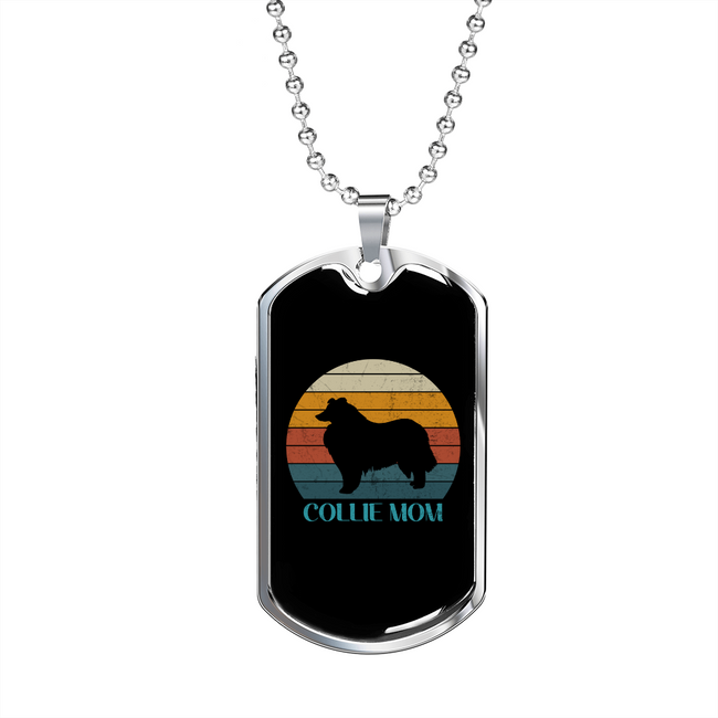 White Collie Mom Necklace Stainless Steel or 18k Gold Dog Tag 24" Chain