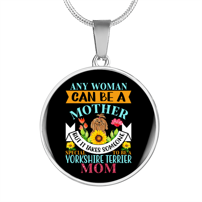Any Woman Can be a Yorkshire Terrier Mom Circle Necklace Stainless Steel or 18k Gold 18-22"